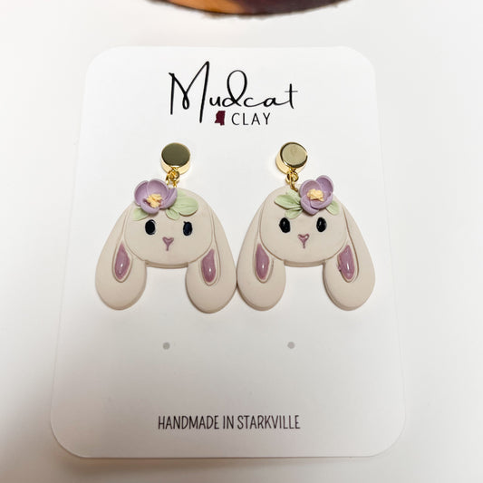 Lop-Eared Bunny with Purple Flower