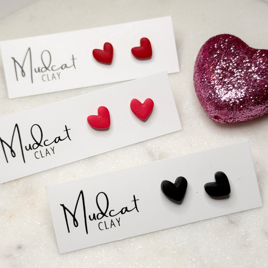 Small Heart Studs | Red, Pink, or Black